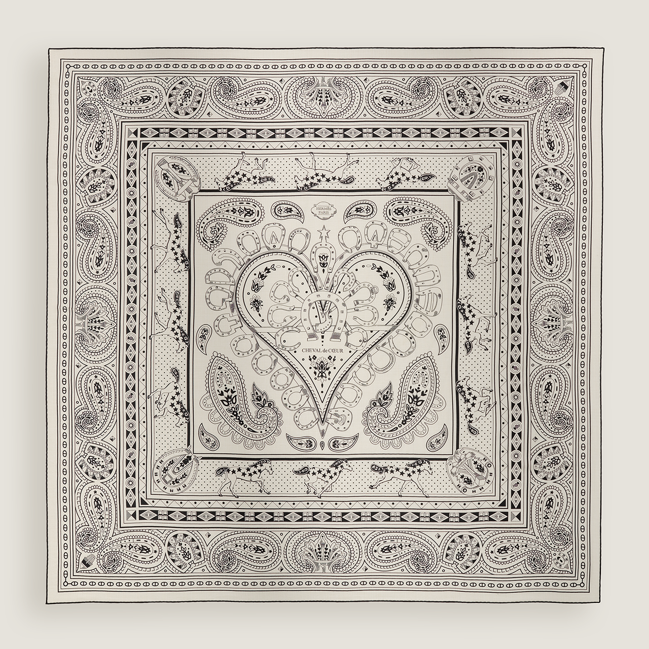 2025AW エルメス カシシル140 シュヴァルドゥクールバンダナ 白黒